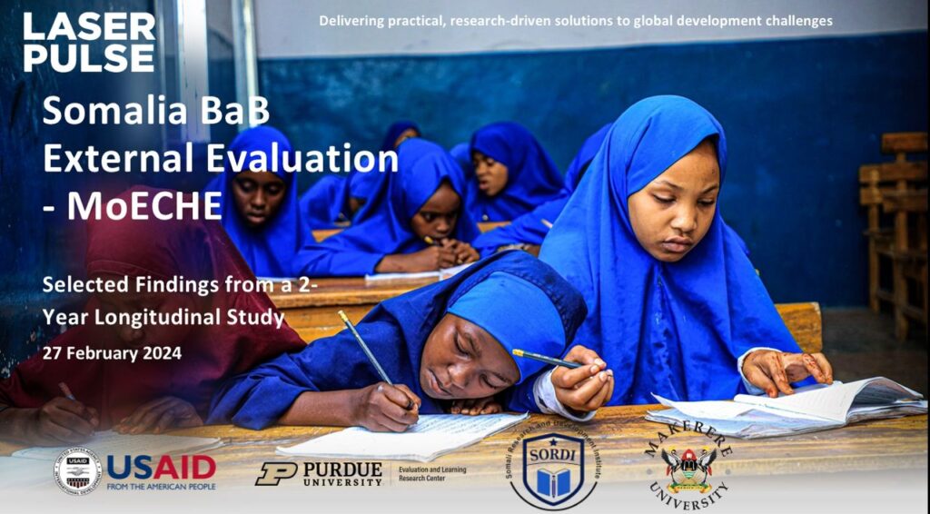 On 27 February 2024, the International Compound’s Zebra Conference Room in Mogadishu, Somalia, hosted a pivotal event: the BAB External Evaluation Endline Findings Validation and Dissemination Workshop. Kicked off by DG Mohamed Mukhtar, Director General of the TVET department at MoECHE, the workshop commenced with gratitude to all attendees, including USAID, implementing partners, education ministries, and the LASER evaluation team, represented by SORDI. The DG highlighted the BAB project’s immense benefits, praising its well-crafted curriculum and framework, instrumental in supporting the Somali government’s educational initiatives. Notably, the project’s impact on literacy rates, teacher recruitment from local communities, and provision of free education to marginalized groups like those in IDP camps underscored its significance.