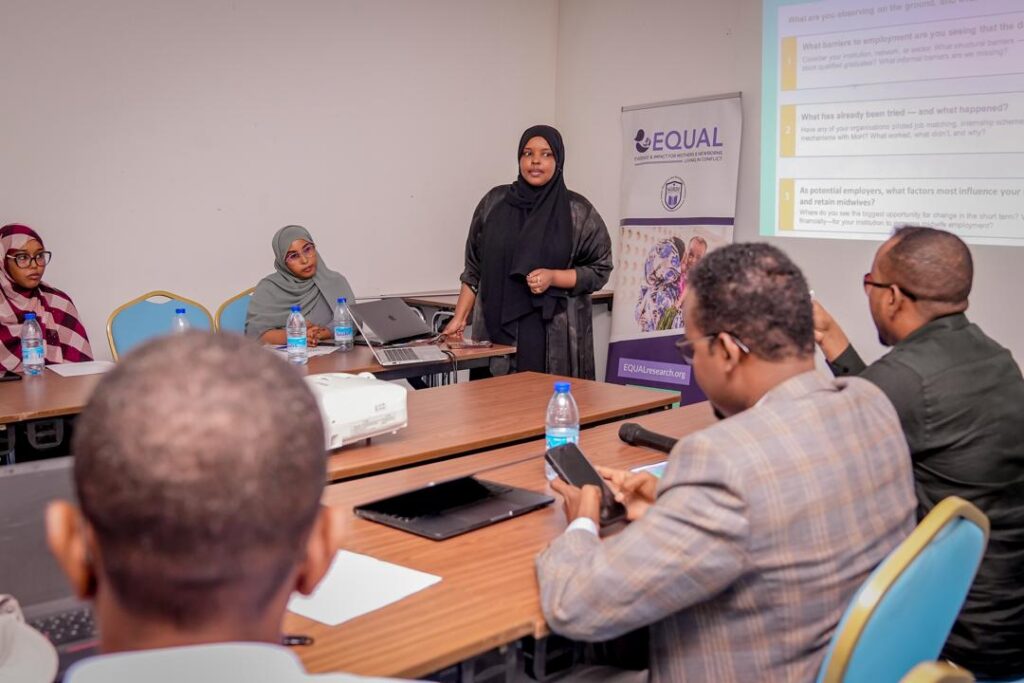 The Somali Research and Development Institute (SORDI), in collaboration with the EQUAL Research Consortium and the Johns Hopkins Center for Humanitarian Health, recently presented findings from a longitudinal cohort study examining the critical transition from midwifery training to employment. This research sheds light on the challenges midwives face as they move from classrooms into the health system, and highlights opportunities for reform.